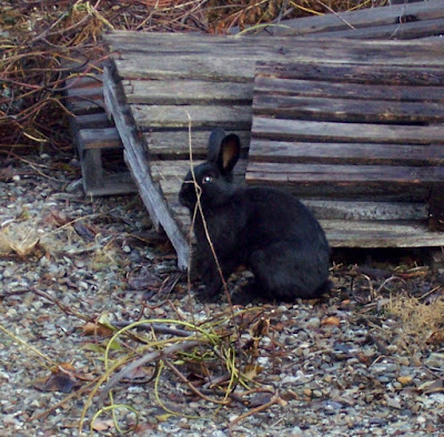 Several weeks ago a black bunny chose us as his/her new forever home. This is most definitely not a wild bunny. Some loser of a human being released a domestic animal into the wild to fend for itself.